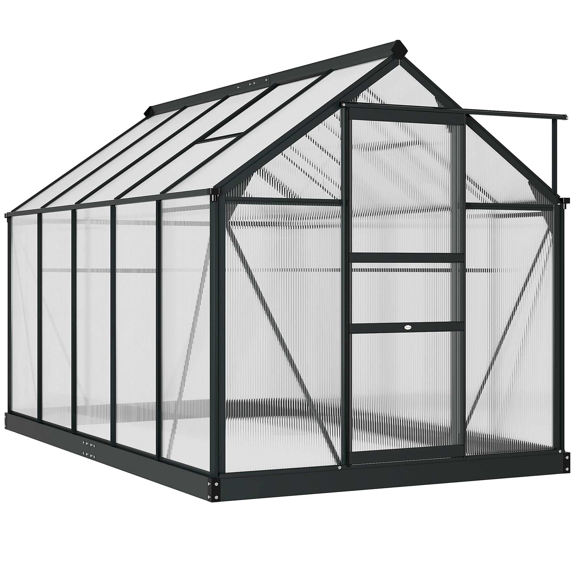 Outsunny 6' x 12' x 6.5' Polycarbonate Greenhouse, Walk-in Green House with Adjustable Roof Vent Galvanized Base Sliding Door Rain Gutter for Outdoor Garden Backyard, Charcoal Grey