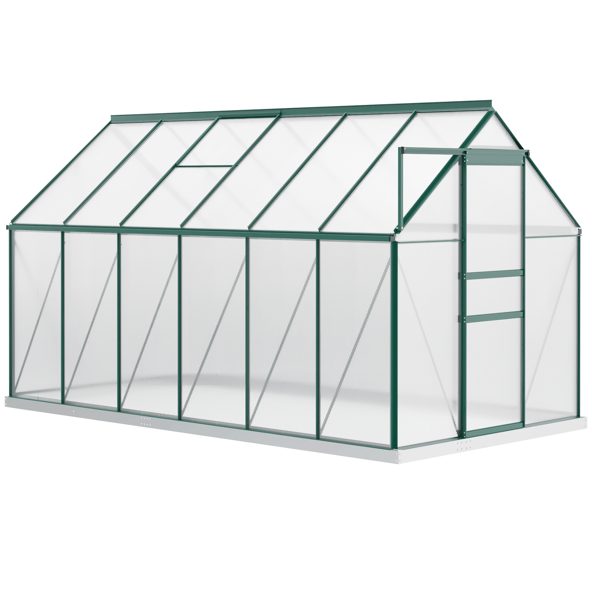 Outsunny 6' x 12' x 6.5' Polycarbonate Greenhouse, Walk-in Green House with Adjustable Roof Vent Galvanized Base Sliding Door Rain Gutter for Outdoor Garden Backyard, Green
