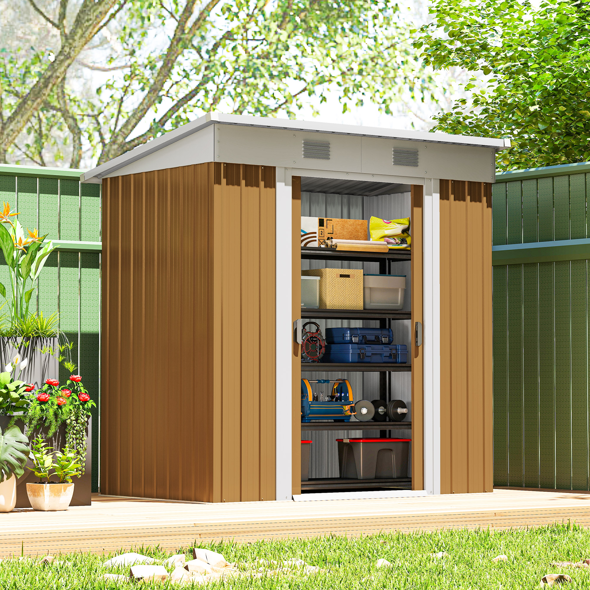 Outsunny 6' x 4' Outdoor Storage Shed, Metal Garden Shed with Lockable Sliding Doors and Vents, Yellow