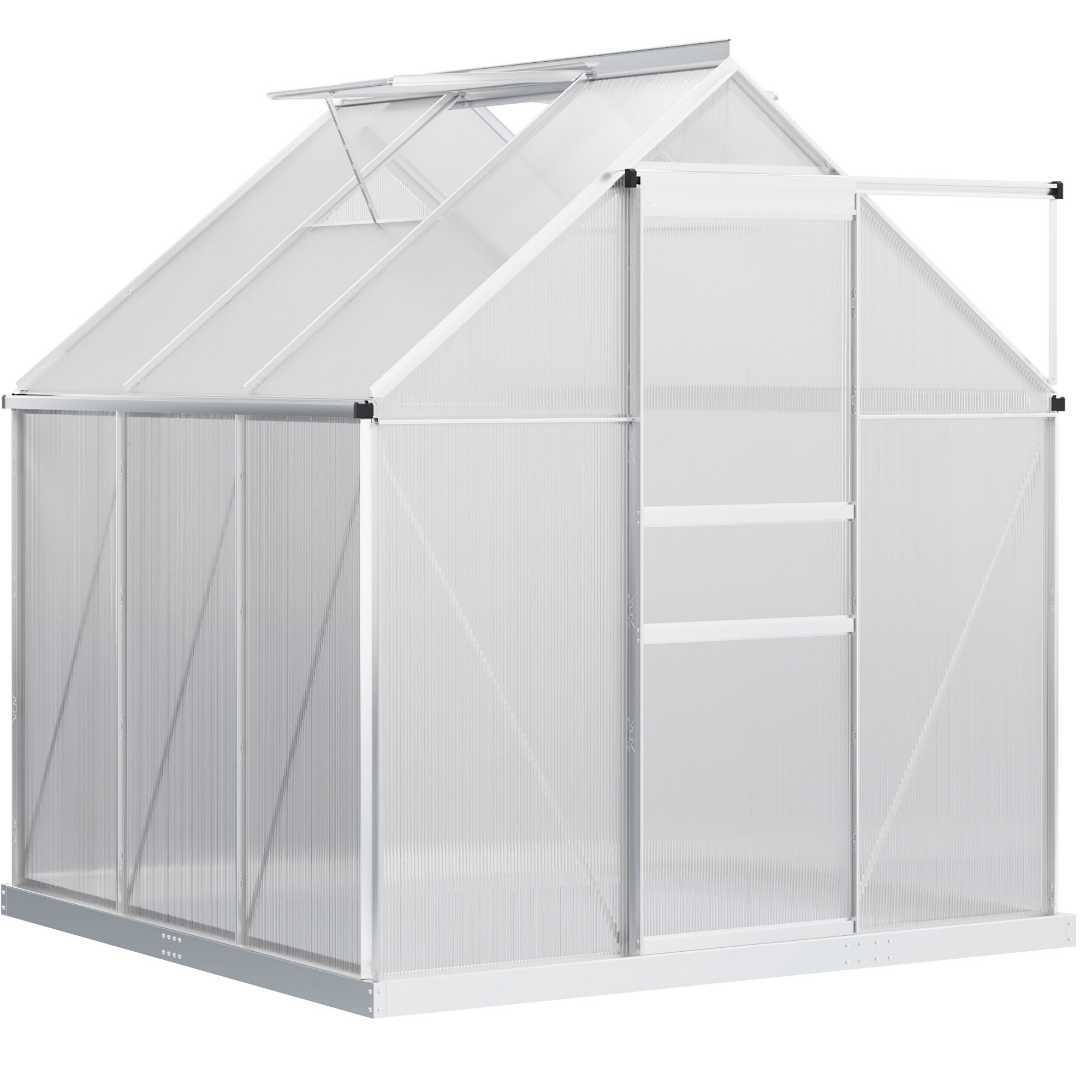 Outsunny 6' x 4' x 6.6' Walk-in Greenhouse, Polycarbonate Greenhouse with Adjustable Roof Vent, Base, Sliding Door, Clear