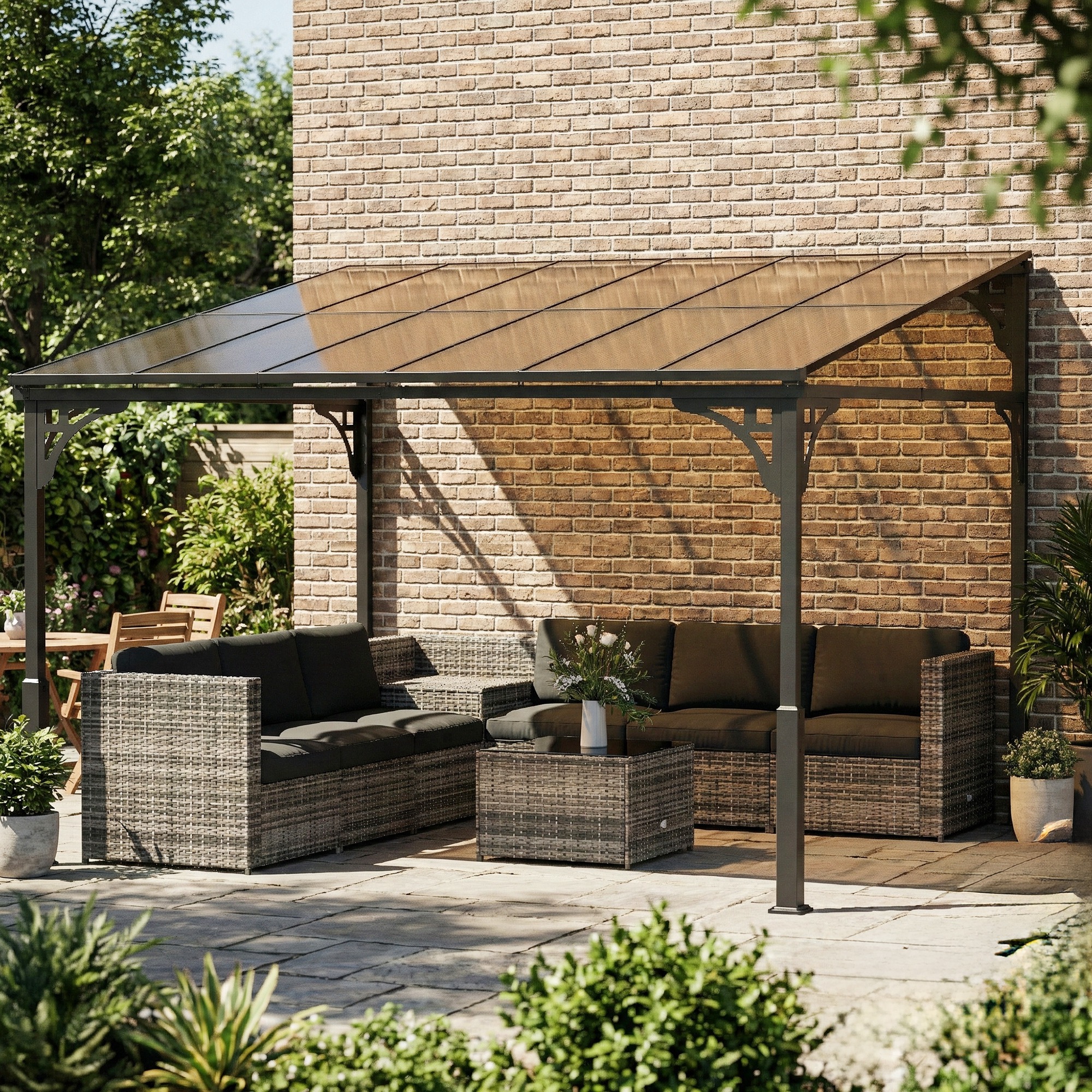 Outsunny 11' x 10' Outdoor Pergola, Wall Mounted Hardtop Lean-to Gazebo with Polycarbonate Roof and Metal-Aluminium Frame