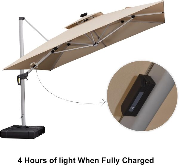 10′ X 10′ Feet Double Top Deluxe Solar Powered LED Square Patio Umbrella Offset Hanging Umbrella Outdoor Market Umbrella Garden Umbrella, Beige