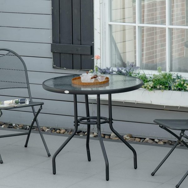Solid Frame: Contemporary glass patio table made with a powder-coated steel base for superior strength and high stability. Anti-slip footpads keep balance and prevent the feet from scratching.