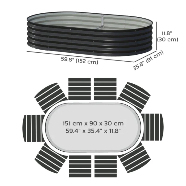 • Planter Inner Size: 59.4″ W x 35.4″ D x 11.8″ H (151 x 90 x 30 cm)