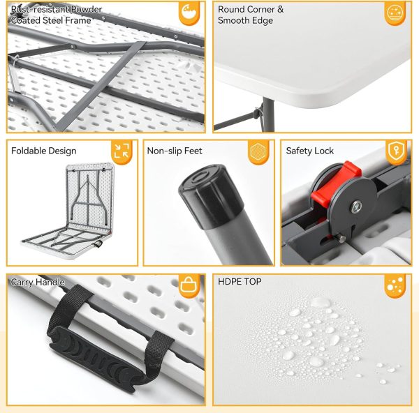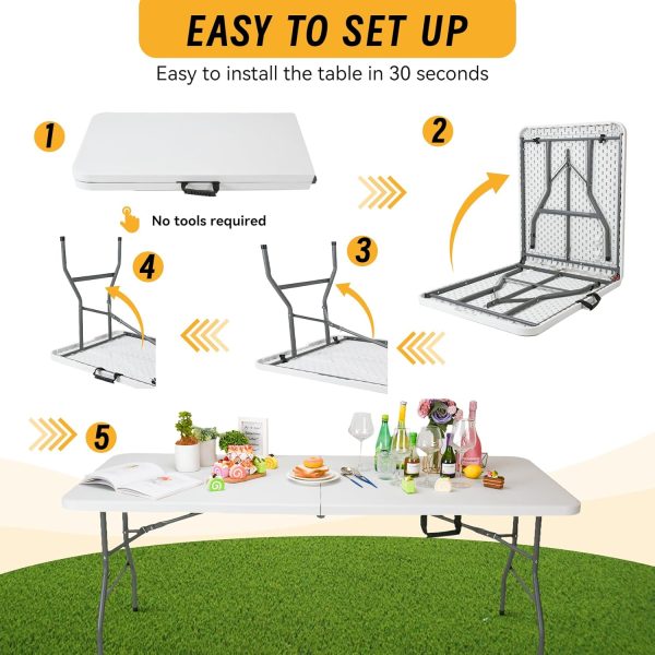 6 FT Folding in Half Table, Plastic Portable Tables for Dining Parties Picnic Camping,