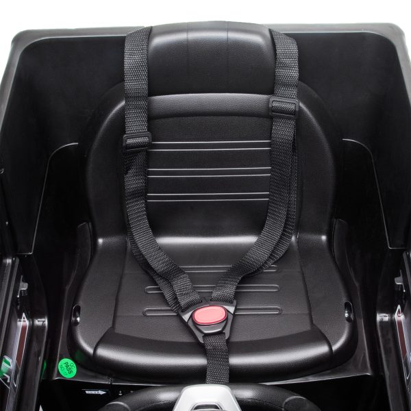 • Maximum Safety: With wide tires, seat belts, lockable doors, and wheel suspension, this ride on car provides a smooth, safe ride. The kid’s electric car starts at a low speed for your child’s safety.