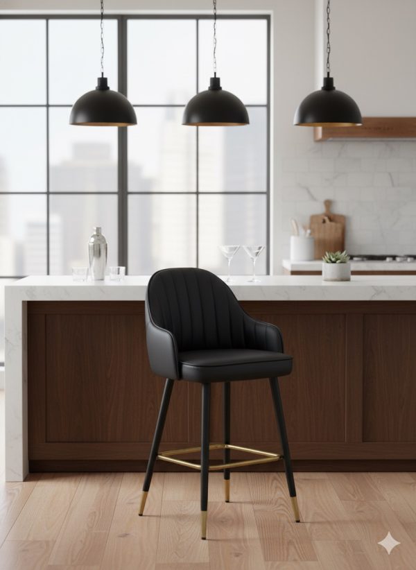 Modern Kitchen Stools-Black-Backrest Bar Stool
