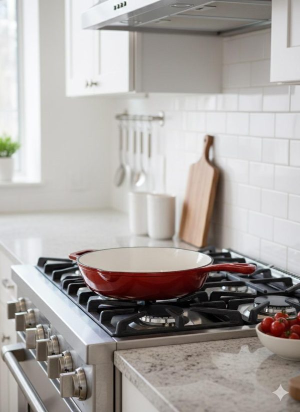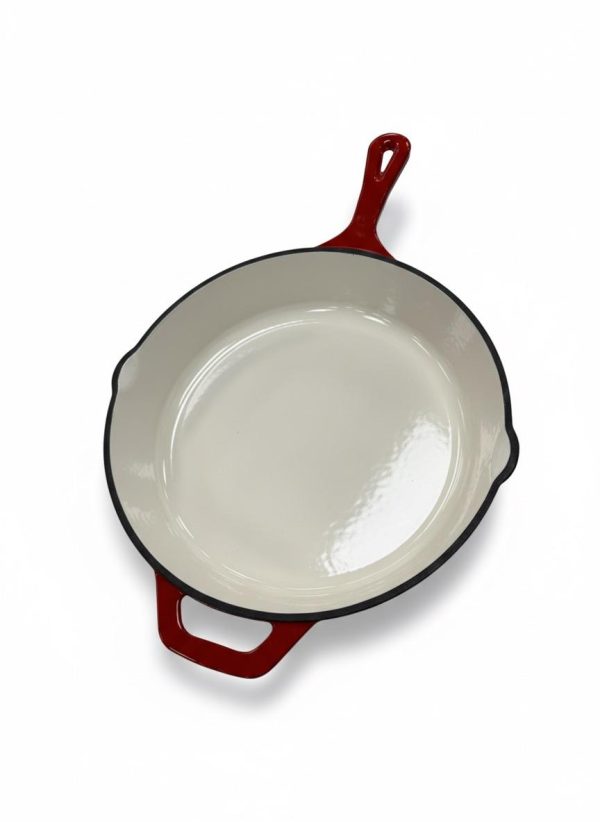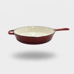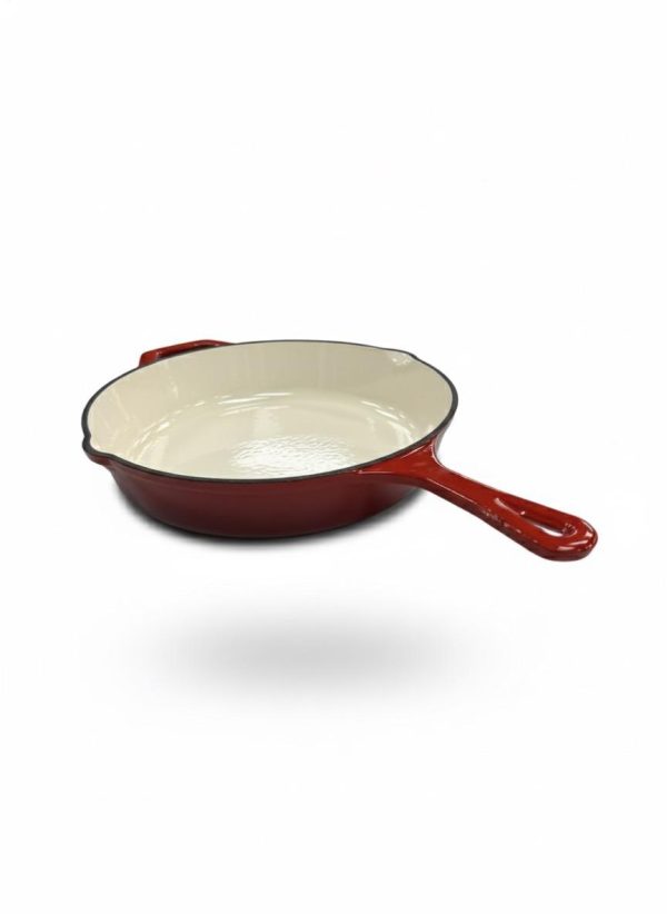 Designed for even heat distribution, this skillet heats consistently after preheating, helping cook food evenly while preserving natural flavors and nutrients. The solid, ergonomic handle offers a secure and comfortable grip, ensuring balance and stability during use. Its refined enamel finish and elegant appearance make it both a functional cooking tool and a stylish addition to your kitchen or dining table.