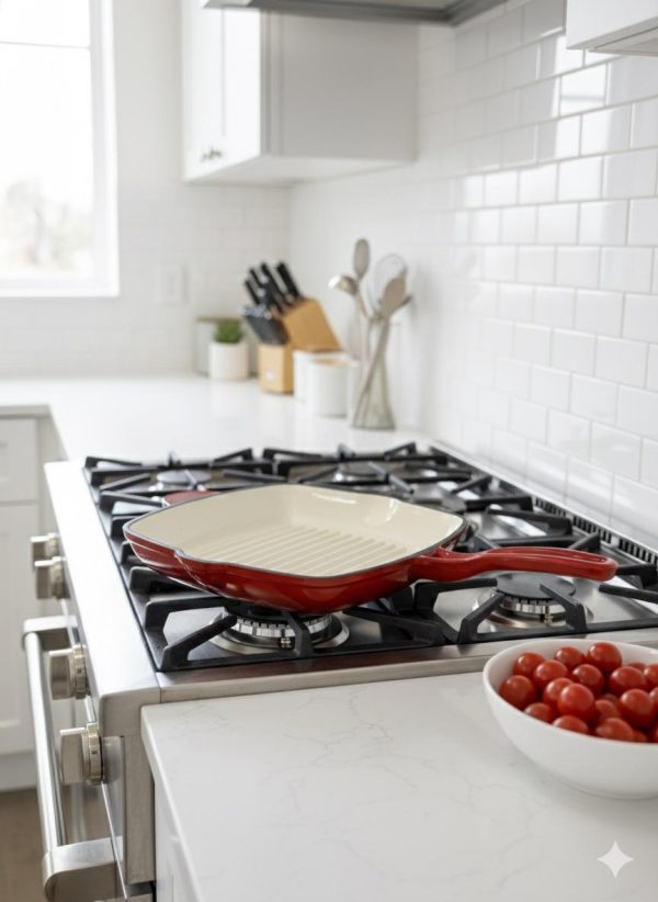 HaWare Cast Iron Skillet – Red– Heavy-Duty, Healthy & Versatile Cooking