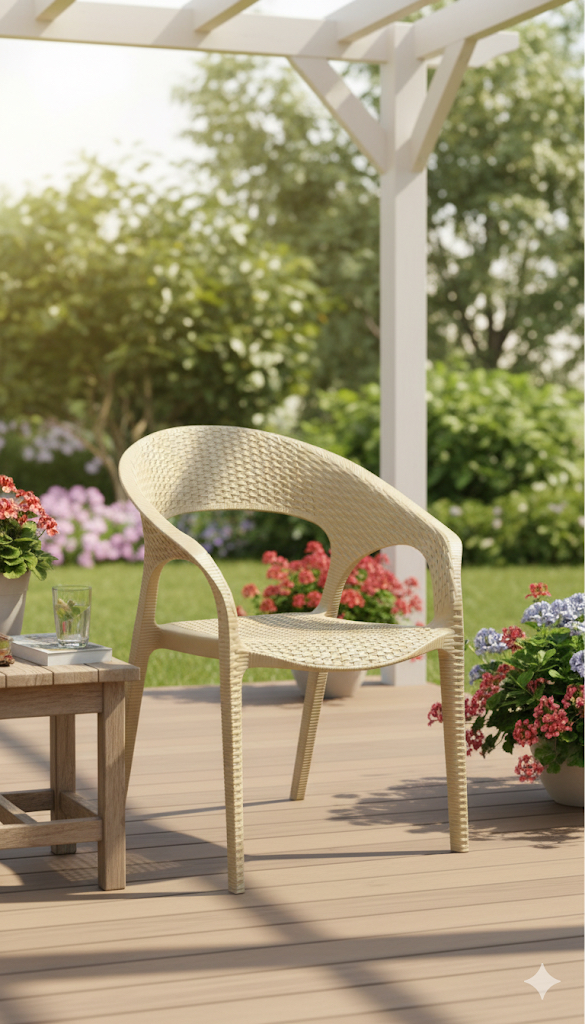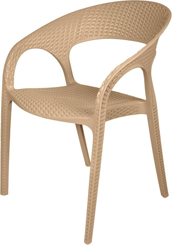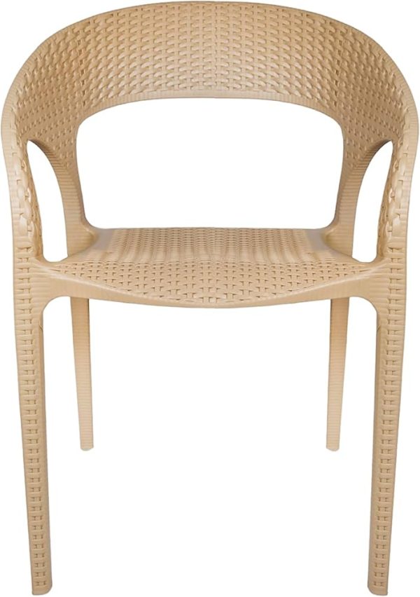 Contemporary Side Chair Black Plastic Patio Dining Chair for Outdoor- Beige