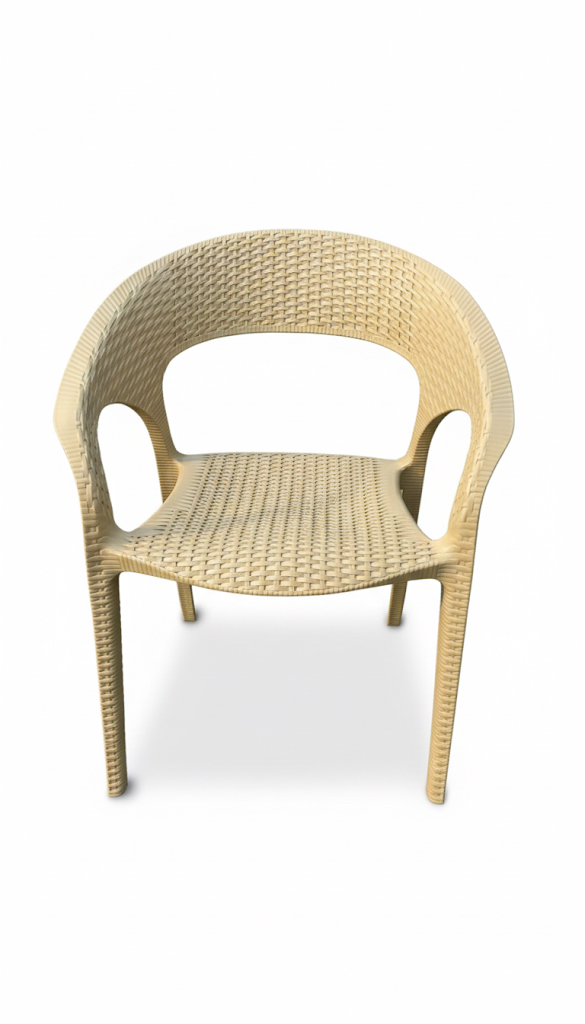 The chair is made from polypropylene reinforced with fiberglass.