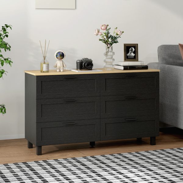 HOMCOM 47″ Wide Chest of Drawers, Modern Dresser with 6 Drawers and Wood Legs for Bedroom, Living Room, Entryway, Black