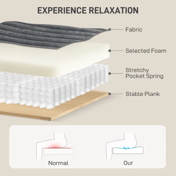 - • Pocket springs and thick foam provide cloud-like softness and lasting support