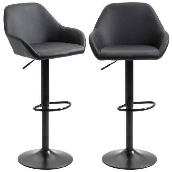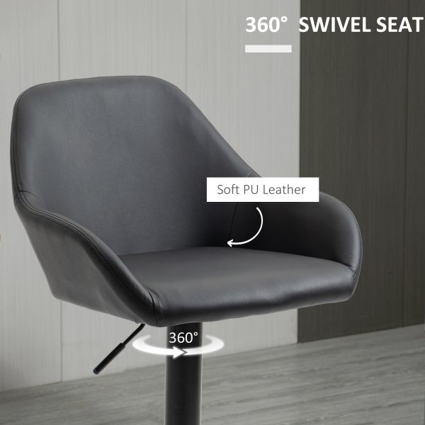 HOMCOM Adjustable Bar Stools Set of 2, Swivel Barstools with Footrest and Back, PU Leather and Steel Round Base, Black