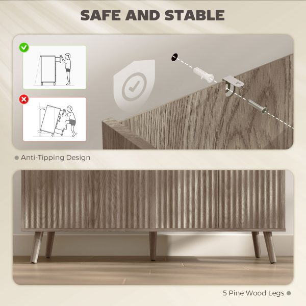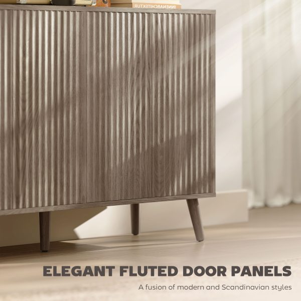 HOMCOM Buffet Cabinet with Storage, Modern Fluted Sideboard with Adjustable Shelves for Dining Room Living Room, Light Grey
