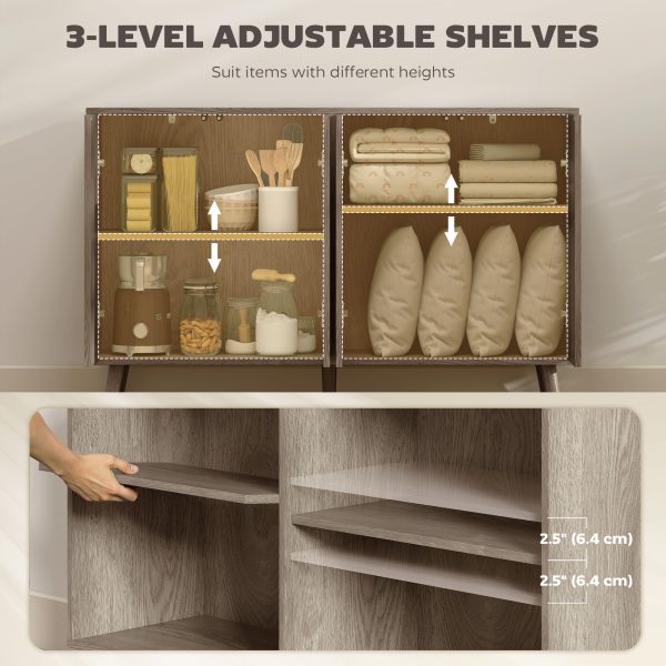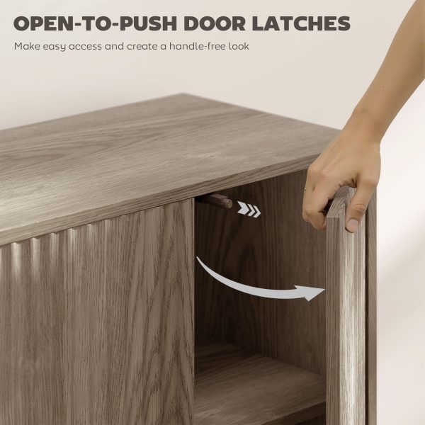 Unlock the charm and versatility of the HOMCOM sideboard and enjoy every moment in your organized dining room. Elegant fluted door panels and wood grain finish on this kitchen cabinet bring modern elegance to complement any decor. Featuring four spacious compartments inside two double-door cabinet with two adjustable shelves, it’s great for creating a coffee bar, organizing kitchen essentials, or adding a stylish touch to your hallway. Embrace the little joys in life with HOMCOM buffet.