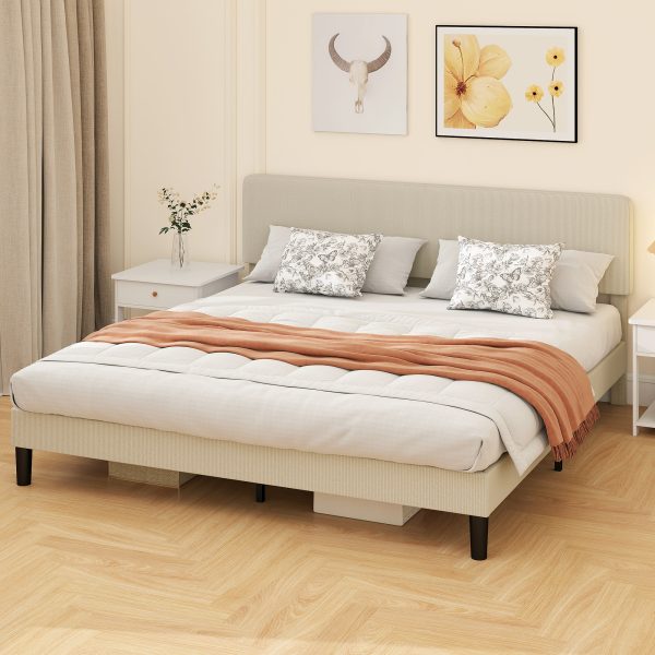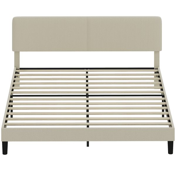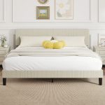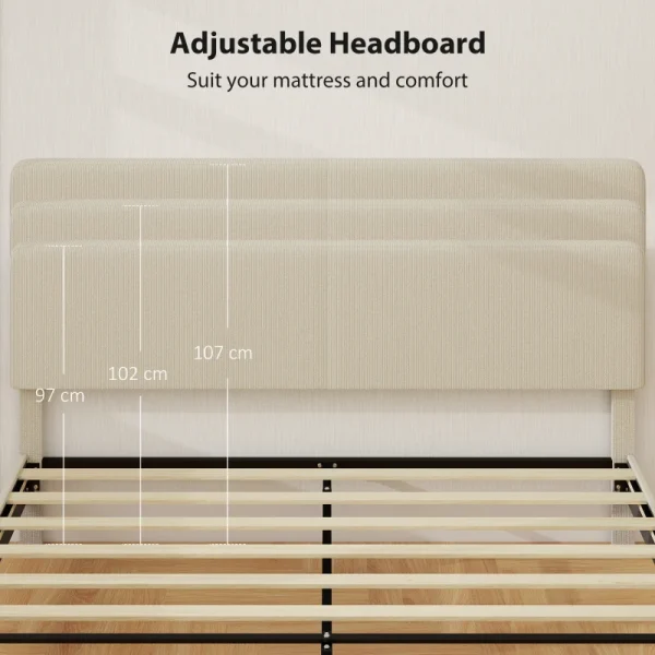 • Adjustable Upholstered Headboard: The headboard of bed frame adjusts to three heights (38.2″, 40.2″, 42.1″/97, 102, 107 cm) to suit mattresses 9.1″-13″ (23–33 cm) thick. Soft corduroy fabric adds a cozy, inviting texture that makes bedtime extra relaxing