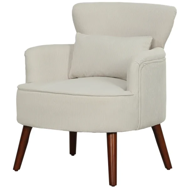 HOMCOM Modern Accent Chair, Upholstered Armchair with Solid Wood Legs and Lumbar Pillow for Living Room, Cream White