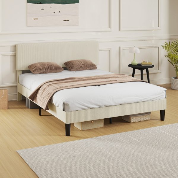 - Adjustable Upholstered Headboard: The headboard of bed frame adjusts to three heights (38.2″, 40.2″, 42.1″/97, 102, 107 cm) to suit mattresses 9.1″-13″ (23–33 cm) thick. Soft corduroy fabric adds a cozy, inviting texture that makes bedtime extra relaxing