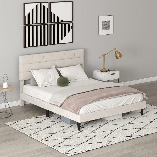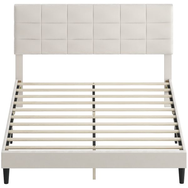 - Chic Upholstered Headboard: Wrapped in skin-friendly velvet-feel fabric and filled with high-resilience foam, the queen bed frame offers a cozy touch. The square-stitched headboard creates an inviting and modern look for any bedroom