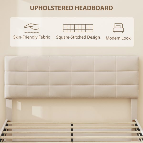 HOMCOM Queen Size Bed Frame with Upholstered Headboard, Modern Platform Bed Frame with Wood Slats, 1100 lbs Capacity, Cream