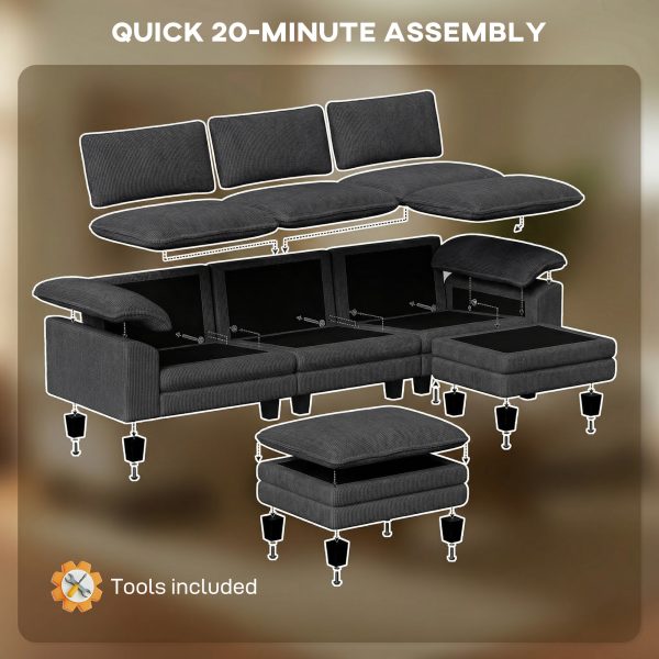 Sink into the heart of your home with this HOMCOM Sectional Sofa. Wrapped in soft corduroy that feels like a warm embrace, it’s more than a couch; it’s where weekend movie nights unfold, little ones tumble into play, and quiet afternoons stretch into lazy evenings. The wide, inviting frame lets the whole family gather close, while the movable ottoman adapts effortlessly—whether you’re propping up feet for a nap or creating extra space for guests. Soft, stylish, and oh-so-livable—because home should feel as good as it looks.
