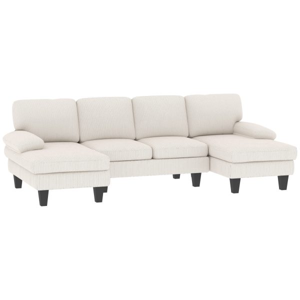Transform your living room with this HOMCOM luxurious U-shaped sectional sofa. Designed for optimal relaxation, its high-density foam, pocket springs, and soft corduroy upholstery offer incredible comfort and support. The textured, retro-inspired fabric is wonderfully cosy, skin-friendly, and built to last, adding a warm, stylish touch to your space. Built on a solid wood frame, this sofa is great for lounging, family nights, or hosting friends in comfort and charm.