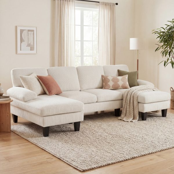 - Luxury Comfort: Crafted with a 6.3″ thick seat with 28 kg/m³ high-density original foam and pocket springs, plus soft corduroy upholstery, this sectional sofa delivers optimal support without sagging and a cozy, enveloping feel for relaxing family time