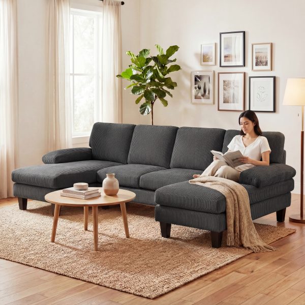 - Luxury Comfort: Crafted with a 6.3″ thick seat with 28 kg/m³ high-density original foam and pocket springs, plus soft corduroy upholstery, this sectional sofa delivers optimal support without sagging and a cozy, enveloping feel for relaxing family time