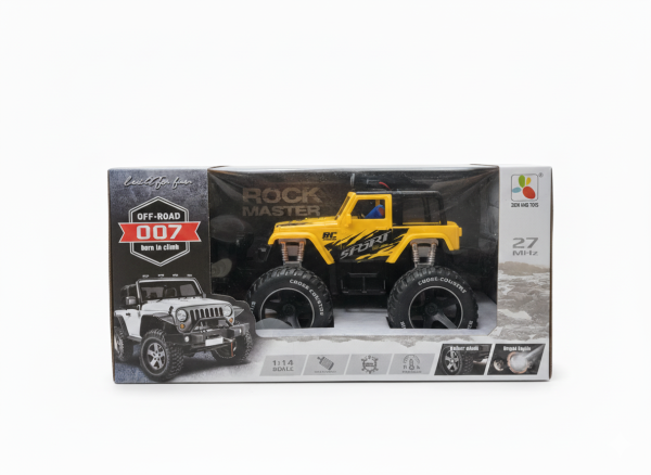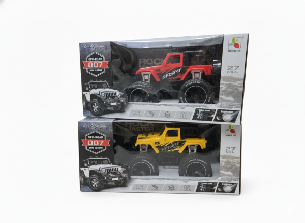 1:14 package electric belt light four-way big wheel off-road remote control car. Wrangler car model/red and yellow mixed window box distribution 3.7V rechargeable battery.USB charging cable (remote control using 2X1.5 battery without distribution)