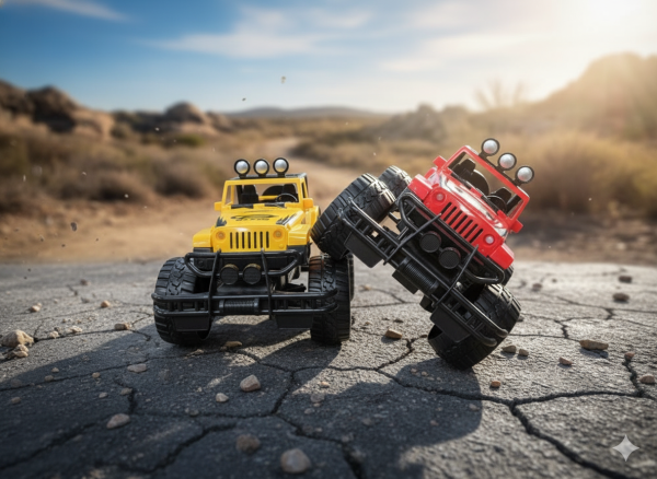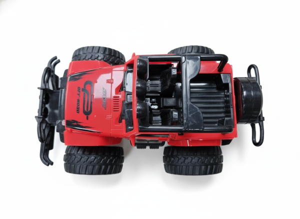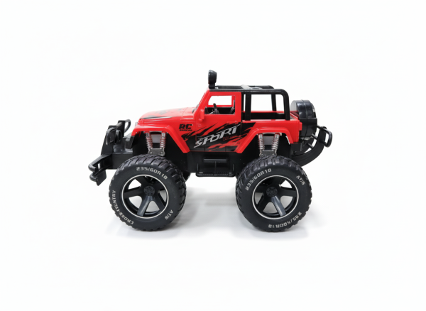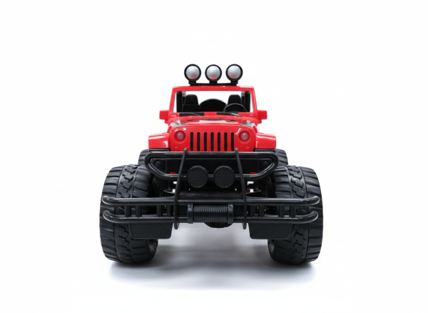 1:14 scale 4WD electric off-road RC Wrangler with lights, big wheels, rechargeable battery, and USB charging.
