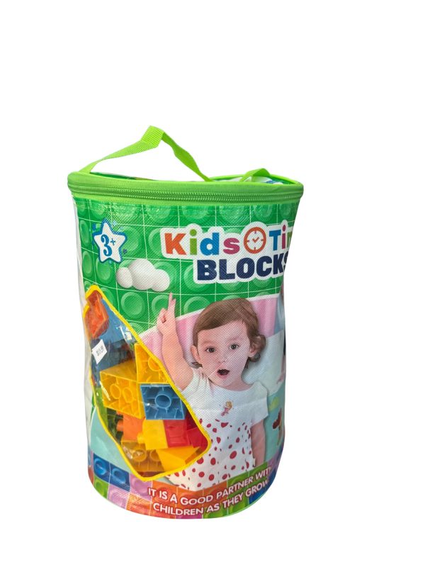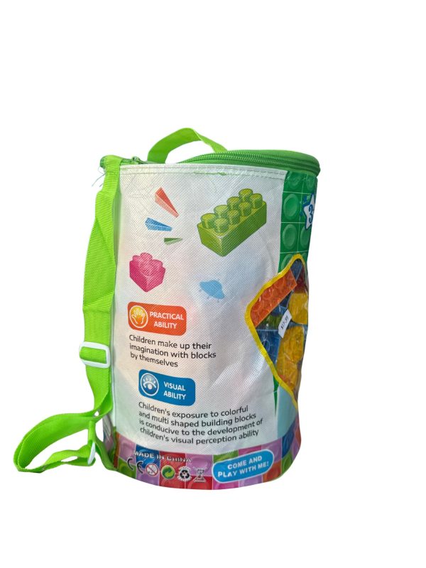 Children’s Building Block Set in Zippered Carry Bag. Includes assorted colorful plastic building blocks designed for early developmental play.
