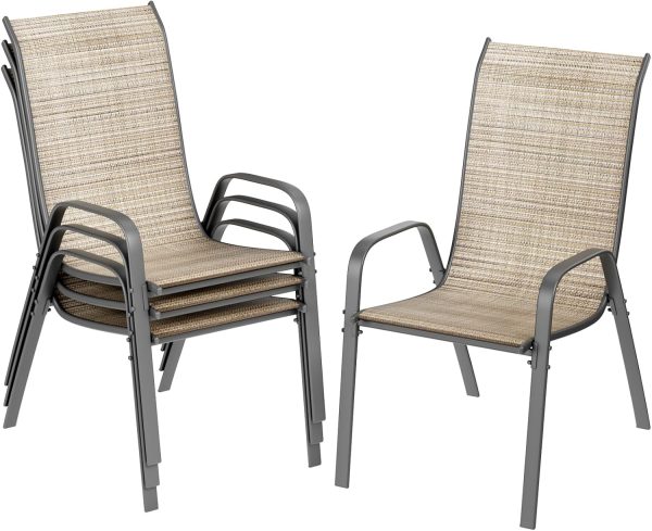 The Mix and Match sling stack chair features a dark brown finish and sling fabric that complements many exterior decors. Pairs well with a variety of table options to create a customized look. The chairs stack for easy storage when not in use.