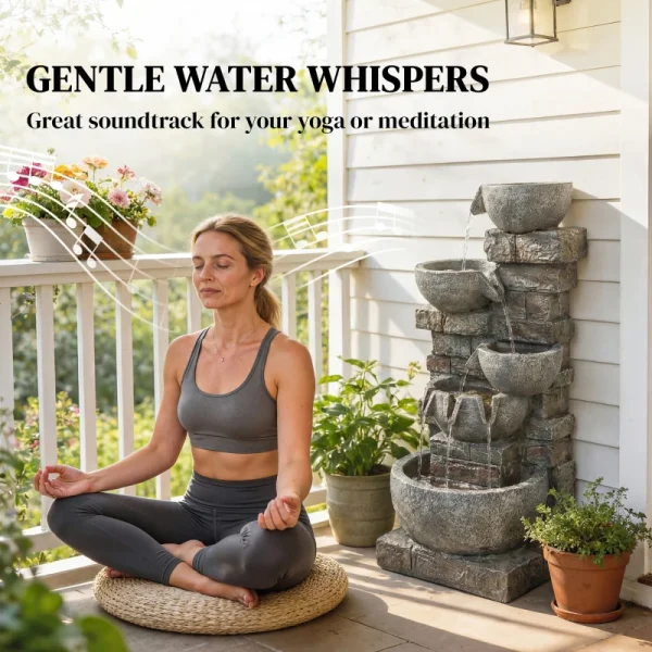 Soothing Waterfall Sound: The unique five-tier design creates a relaxing cascade, masking noise for a tranquil retreat. Enjoy meditative moments with this outdoor fountain on your patio or in the garden, letting the gentle sounds wash away stress