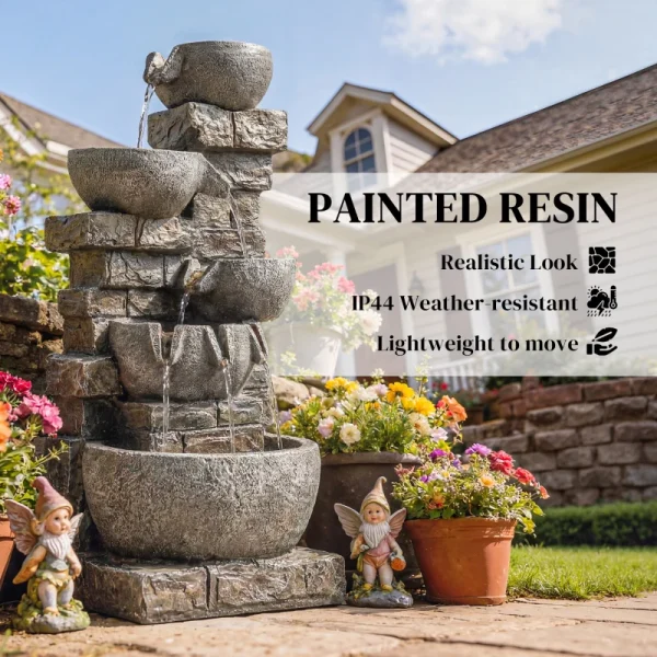 All-Weather Durability: Crafted from robust, weather-resistant resin, this yard fountain is built to last. Its rustproof and fade-resistant structure withstands sun, rain, and other elements, ensuring you can enjoy its beauty year after year without worry