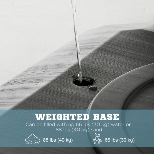 • • Base capacity: 66lbs (30kg) water and 88lbs (40kg) sand