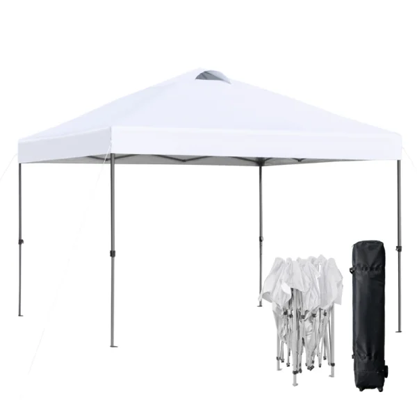 Outsunny 10′ x 10′ Pop Up Canopy Tent with Airy Top Vents and Wheeled Carry Bag for Outdoor, Garden, Patio, White