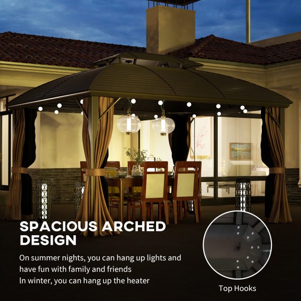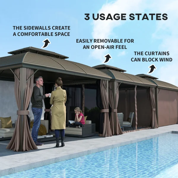 Outsunny 10′ x 12′ Hardtop Gazebo Canopy with Double Roof, Netting and Curtains for Garden, Backyard, Deck, Coffee