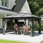 - Galvanized Steel Roof: Our 10×12 hardtop gazebo’s roof is made with steel panels to be an enduring shelter against sun and rain. Ceiling hooks help you hang lights, flower baskets, or other decorations to personalize your space.