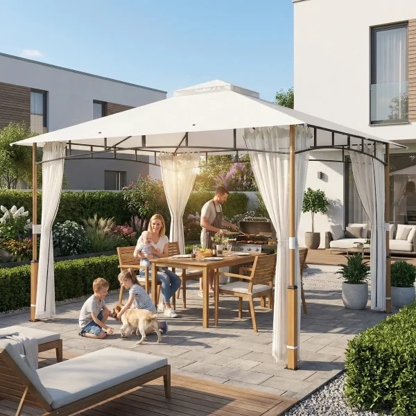 Your gatherings deserve an upgrade from the unpredictable outdoors. Sunburns and bothersome insects can quickly spoil a wonderful afternoon with family. The Outsunny gazebo offers a stylish solution, featuring elegant wood-grain posts and a double-tier roof that enhances airflow and comfort for up to eight guests. This spacious outdoor gazebo includes a UV-blocking canopy and mesh walls, creating a cool, bug-free haven where you can fully enjoy time together in an elevated outdoor living space.