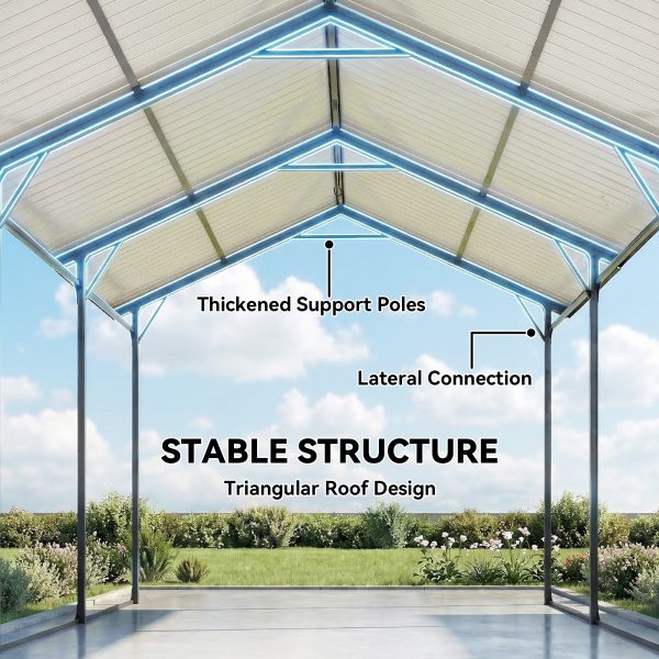 - Heavy Duty Metal Carport: Unlike traditional tent-style roofs, this carport uses steel plates with a protective film to withstand changing outdoor weather. Fully waterproof and UV-resistant, bringing lasting peace of mind for vehicles or garden gear