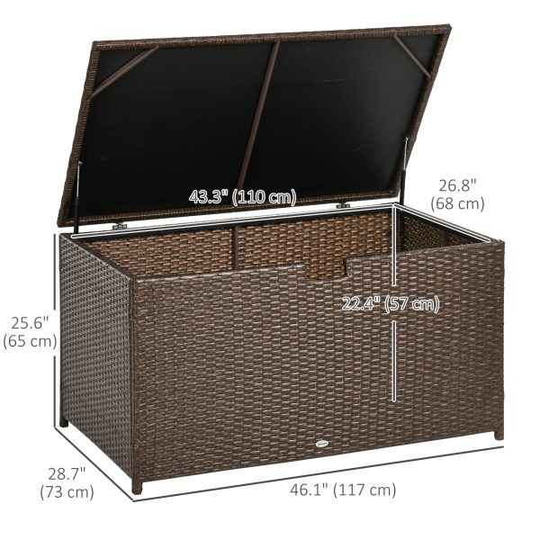 Outsunny 113 Gallon Outdoor Storage Box, Rattan Deck Box for Indoor, Patio Furniture Cushions, Brown