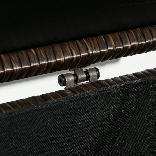 Deck storage box with waterproof liner from Outsunny is a solution for keeping your tools, supplies, or other accessories dry and clean. A safe and swift pneumatic bar lift mechanism, access your belongings has never been simpler. Handwoven PE rattan wrapped on the steel frame, adds a touch of classic aesthetics while offering enhanced water resistance. Whether you place it on your porch, patio, balcony, or poolside, the Outsunny rattan box is the great choice for outdoor storage.