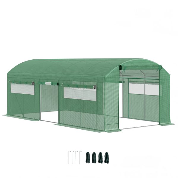 Outsunny 19.5′ x 10′ x 7.5′ Tunnel Greenhouse with 3 Roll-Up Doors and Large Mesh Windows, Galvanized Steel Frame, Wind Resistant, Green
