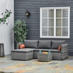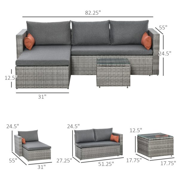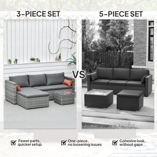 Outsunny 3-Piece Patio Furniture Set Modern Sectional Sofa Rattan Chair Wicker Conversation Set Outdoor Hand Woven Rattan Wicker Furniture Patio Coffee Table Sofa Set, Grey
