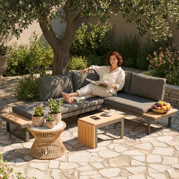 Transform your patio into a haven of relaxation with the outdoor sectional from Outsunny. This versatile modular patio conversation set includes two loveseats with detachable backs and a functional coffee table, crafted from water-resistant fiber cloth for year-round enjoyment. Sink into the cozy, thickly padded cushions and enjoy convenience at your fingertips with built-in side tables. Our Outsunny L shaped aluminum patio sectional set is great for any outdoor setting, from lawns to balconies