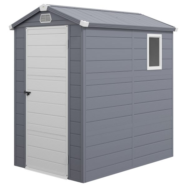 Outsunny 4.5′ x 6′ Garden Storage Shed with Latch Door, Vents, Sloped Roof, Light Grey