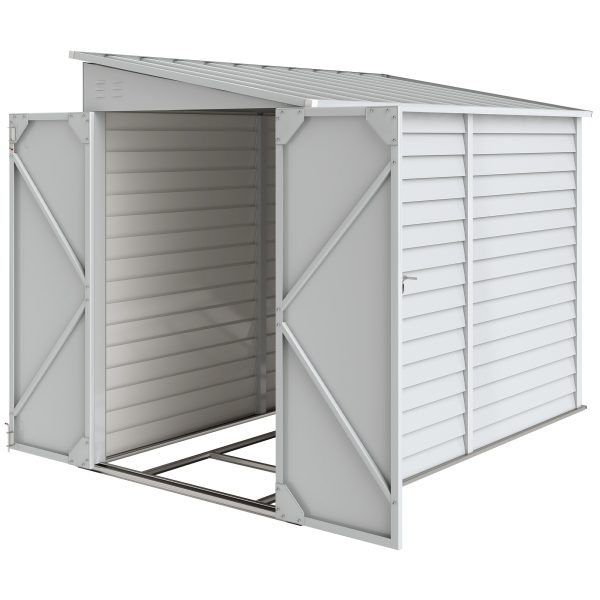 Outsunny 4.6′ x 9′ Steel Outdoor Storage Shed, Lean to Shed, Metal Tool House with Foundation Kit, Lockable Doors, Gloves and 2 Air Vents for Backyard, Patio, Lawn, White