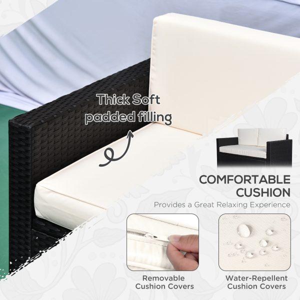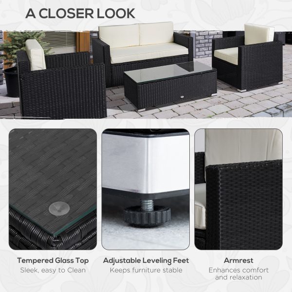 Outsunny 4 Pieces Sectional Patio Furniture Set, Rattan Wicker Patio Chairs Outdoor Coffee Set with Cushions, Cream White