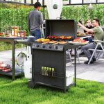 - Versatile Storage Solution: This large gas BBQ grill features a side table for convenient preparation, a storage shelf for effortless organization, a side hook for holding tank and a spice rack, making it a practical centerpiece in your garden